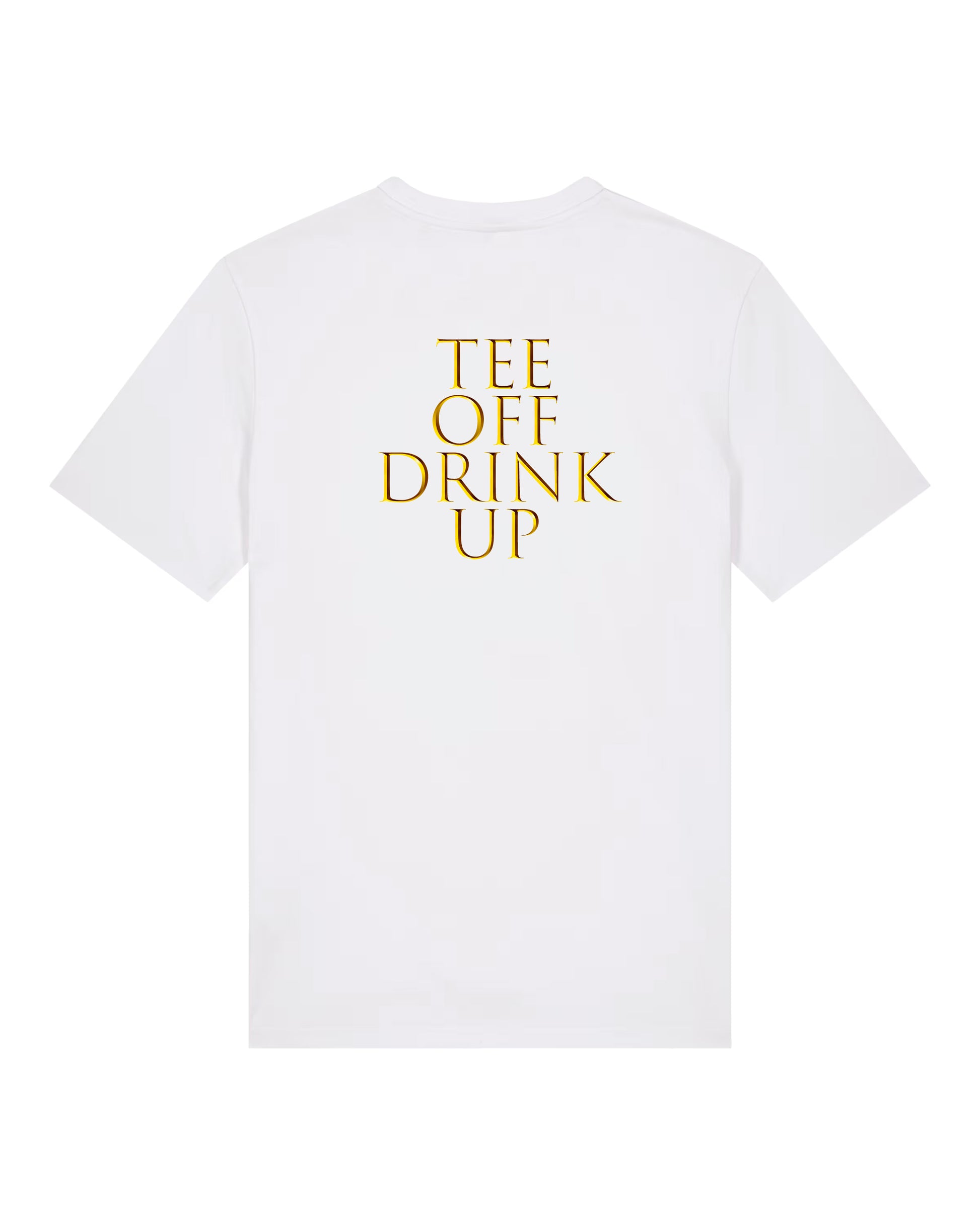 Rückseite: großes Statement „TEE OFF • DRINK UP“